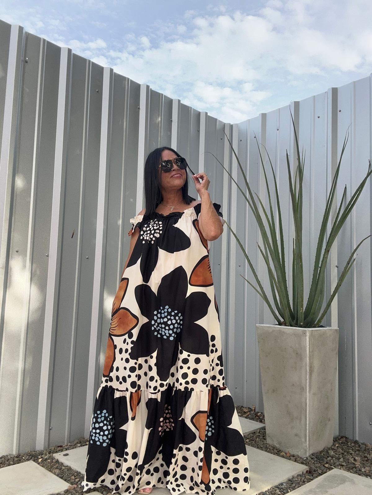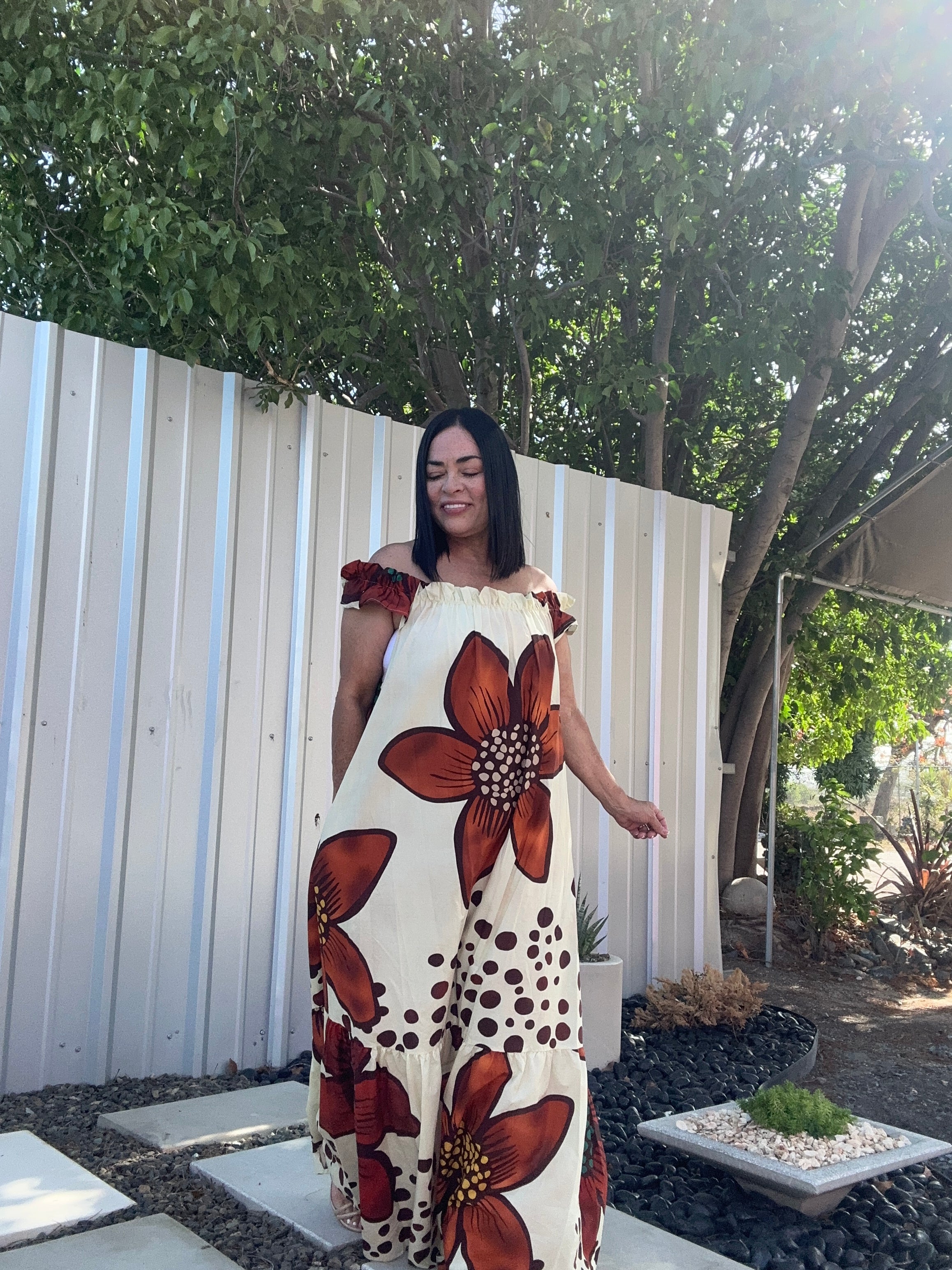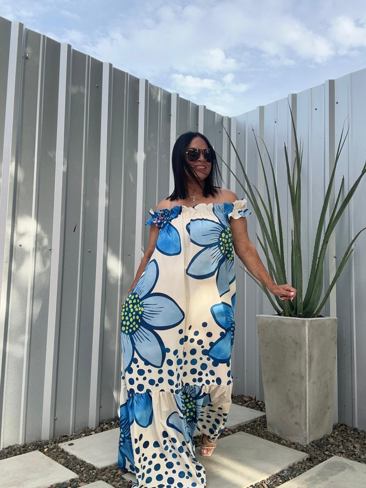 Maxi Dress hermoso floral. La tela es algodón. Perfecto para usar off shoulder.